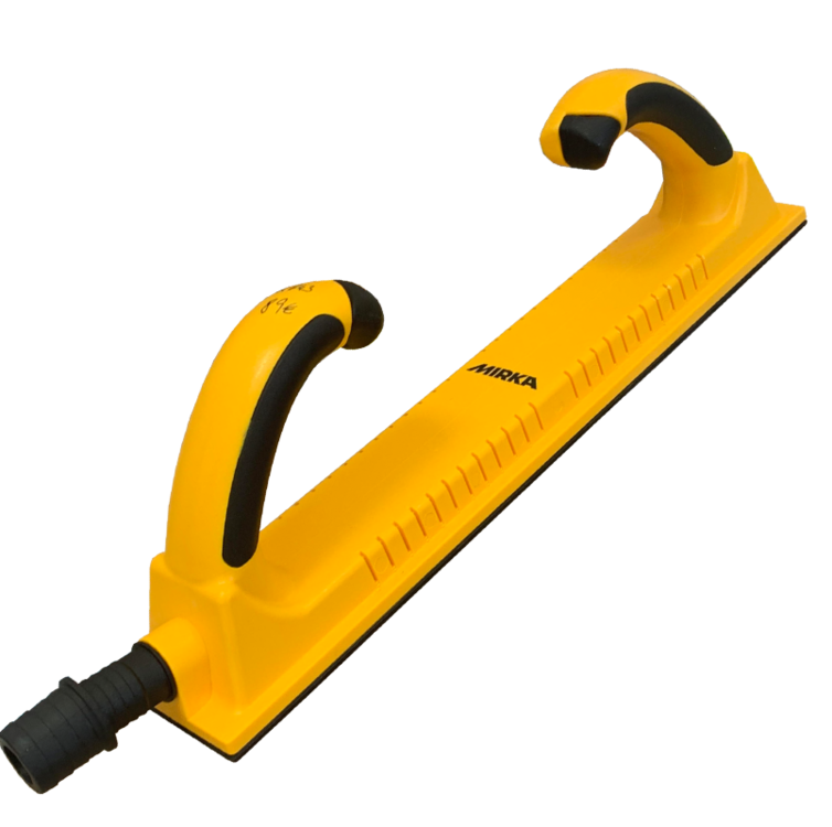 Suchý zips pre ľahkú výmenu brúsných papierov, odolná konštrukcia poskytuje veľmi dobrú kontrolu pri brúsení, ergonomická rukojeť.