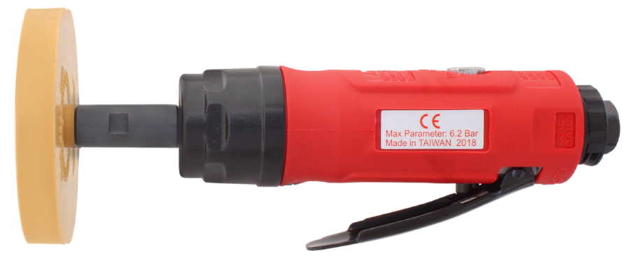 Vzduchová stopková brúska je určená na odstránenie zvyškov lepidla z obojstrannej lepiacej pásky. Napríklad vhodné do pneuservisov a do auto lakovni. Nepoškodí a nepoškriabe lak. Pracovná rýchlosť zabraňuje spáleniu ošetrovaných povrchov. Pevné, profesionálne spracovanie a zosilnená konštrukcia.
